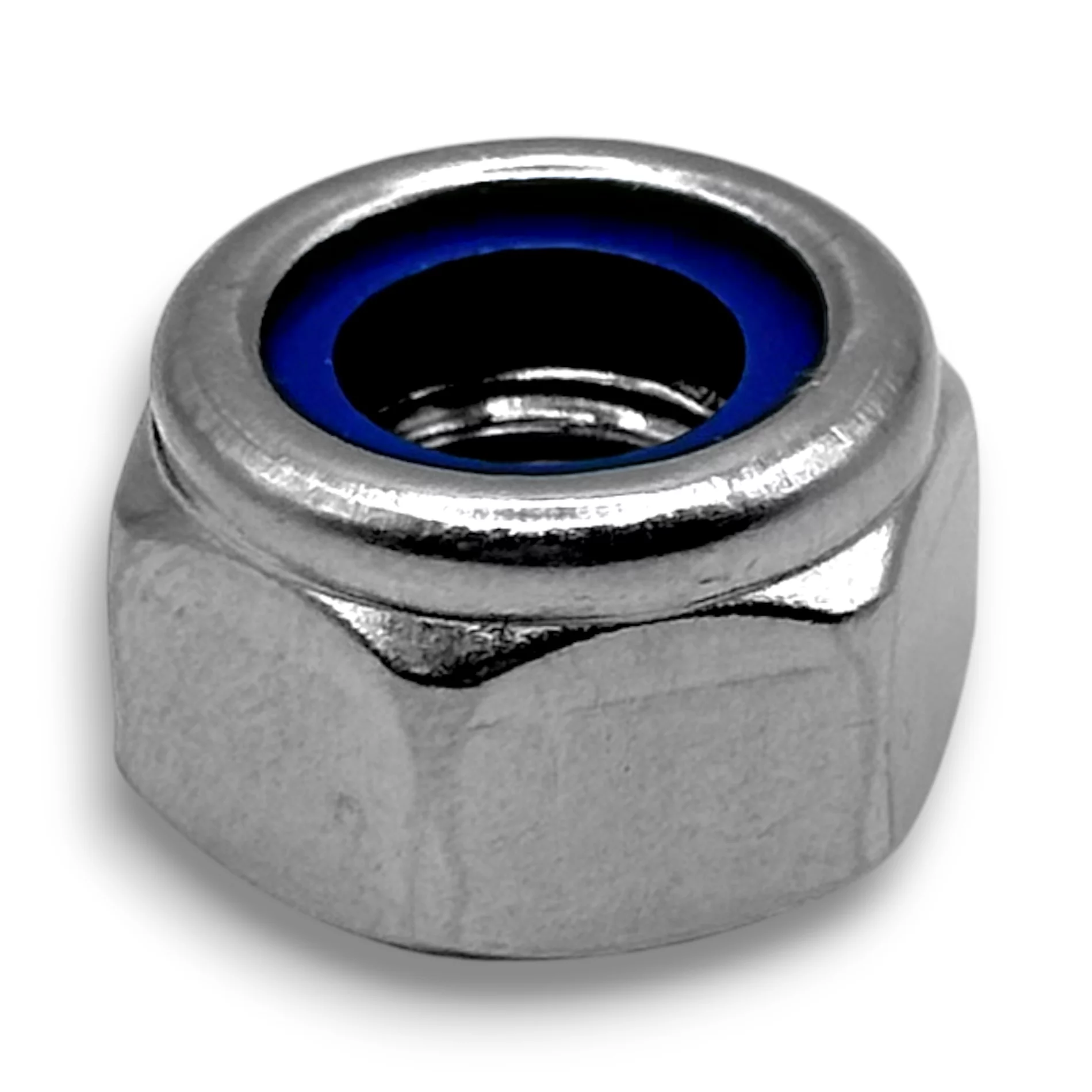 Podczas dokręcania, gwint śruby wcina się w nylonowy pierścień umieszczony w górnej części nakrętki. Powoduje to powstanie oporu i kasowanie luzów na gwincie, co skutecznie blokuje nakrętkę w ustalonej pozycji, nawet jeśli nie jest ona dokręcona do oporu.