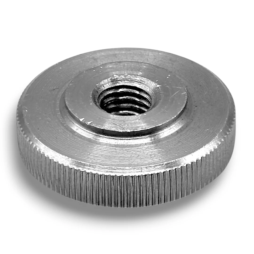Nakrętka radełkowana płaska (niska) - DIN 467Nakrętka wg normy DIN 467 to specjalistyczny element złączny przeznaczony do obsługi ręcznej. Wyróżnia się charakterystyczną, chropowatą powierzchnią boczną (tzw. radełkowanie lub moletowanie), która zapewnia pewny chwyt i zapobiega ślizganiu się palców podczas dokręcania.