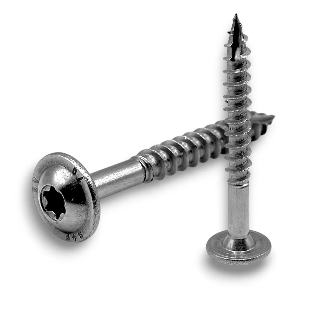 Wkręt do drewna wyposażony w poszerzony łeb kołnierzowy (talerzowy), precyzyjne gniazdo typu Torx (TX) oraz niepełny gwint, wykonany według normy. Jest to wysoce wyspecjalizowany łącznik ciesielski. Konstrukcja łącząca gładki trzpień i szeroki kołnierz sprawia, że wkręt ten działa jak imadło – z ogromną siłą dociąga do siebie łączone elementy, eliminując konieczność stosowania dodatkowych podkładek dociskowych.