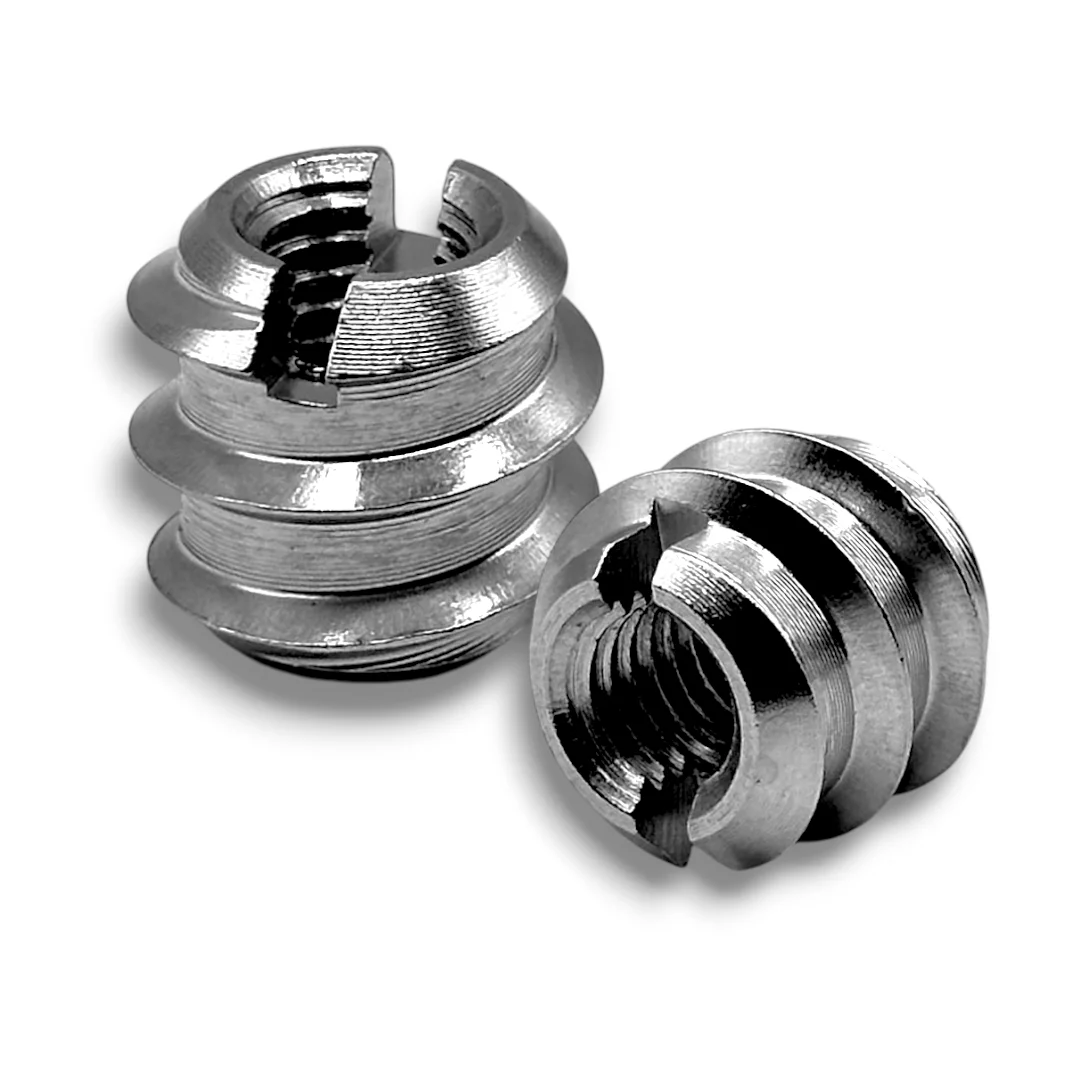 Wkręcana mufa do drewna (znana profesjonalnie jako wkładka gwintowana), wykonana według normy. Jest to wyspecjalizowany element złączny, który pozwala na osadzenie wytrzymałego gwintu metrycznego wewnątrz podłoża drewnianego lub płyt wiórowych. Zewnętrzny, głęboki gwint stabilnie i trwale kotwi mufę w materiale, podczas gdy gwint wewnętrzny umożliwia bezproblemowe, wielokrotne wkręcanie i wykręcanie standardowych śrub metrycznych.