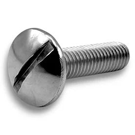 M5x35 A2 Śruba grzybkowa z nacięciem NFE 27-128 - Wykonana ze stali nierdzewnej A2. Wykazuje podwyższoną odporność na wilgoć i zjawiska atmosferyczne. Szeroki łeb grzybkowy zapewnia estetyczne, płaskie wykończenie i dużą powierzchnię docisku, a nacięcie proste pozwala na montaż płaskim wkrętakiem.